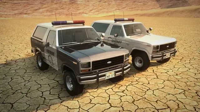 Внедорожник - Ford Bronco Police 1982 года. Что нового в версии 1.1: Доработана адаптация к Improved Vehicle Features 2.1.1: руль, освещение, спецсигналы;Добавлена адаптация к VehFuncs 2.3 (и новее): вибрация мотора, вращающиеся детали, два варианта ливреи для деревенской и пустынной местности;Перенастроены материалы, разные мелкие исправления и фиксы.